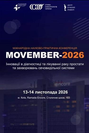 13-14 листопада 2026 р. відбудеться міжнародна науково-практична конференція «MOVEMBER-2026: «Інновації в діагностиці та лікуванні раку простати і захворювань сечовидільної системи», м. Київ, Ramada Encore, Столичне шосе, 103.